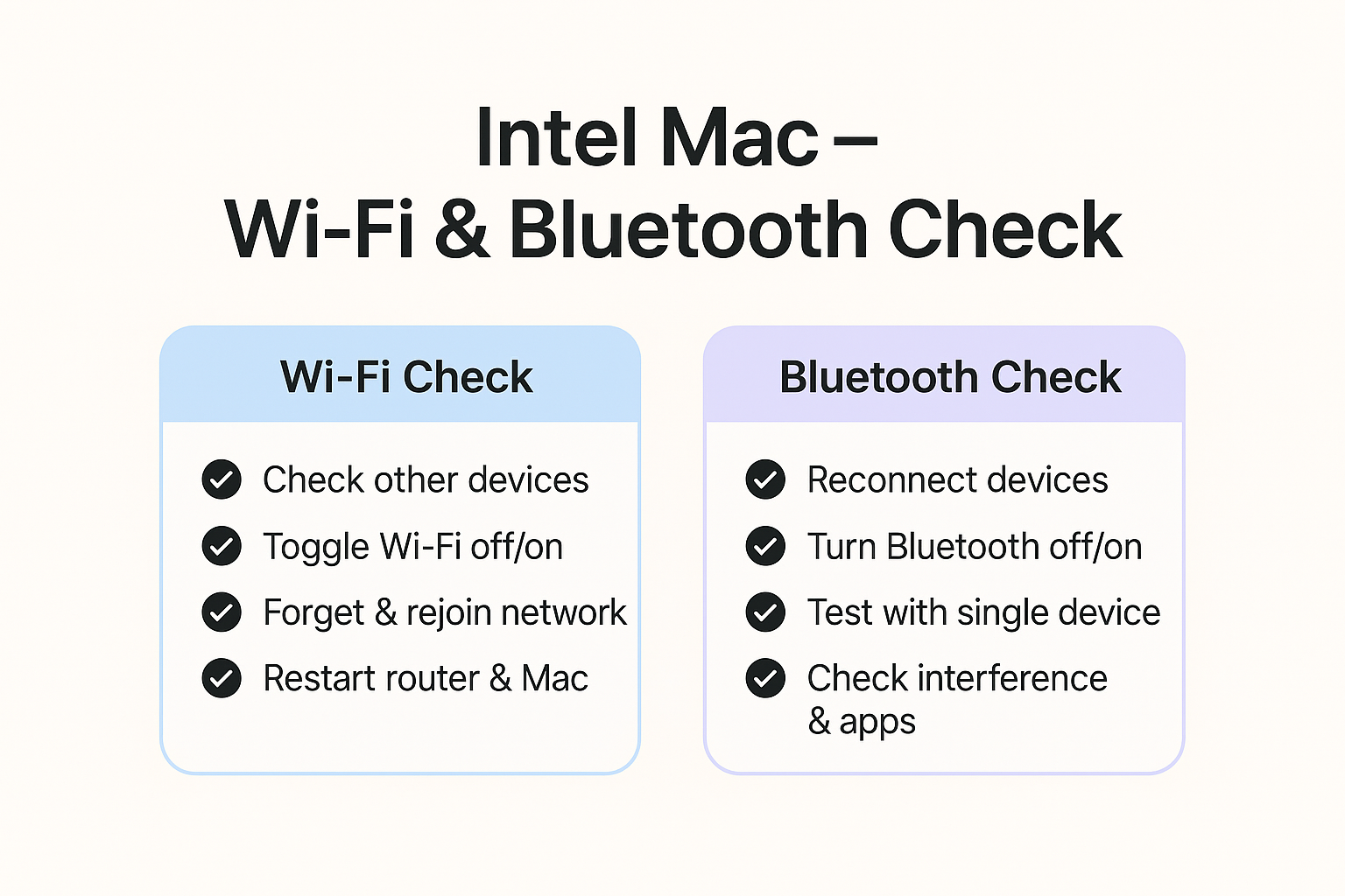 macOS Tahoe 26으로 업그레이드한 인텔 맥에서 자주 보고되는 Wi-Fi 끊김과 블루투스 지연 문제를, 초보자도 따라 할 수 있는 단계별 해결 순서로 정리한 실전 트러블슈팅 가이드입니다.