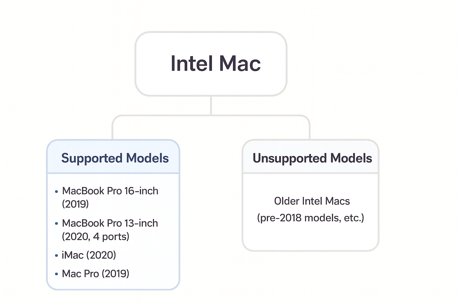 - 완전 미지원: 이미 이전 버전에서 끊긴 구형 인텔 맥