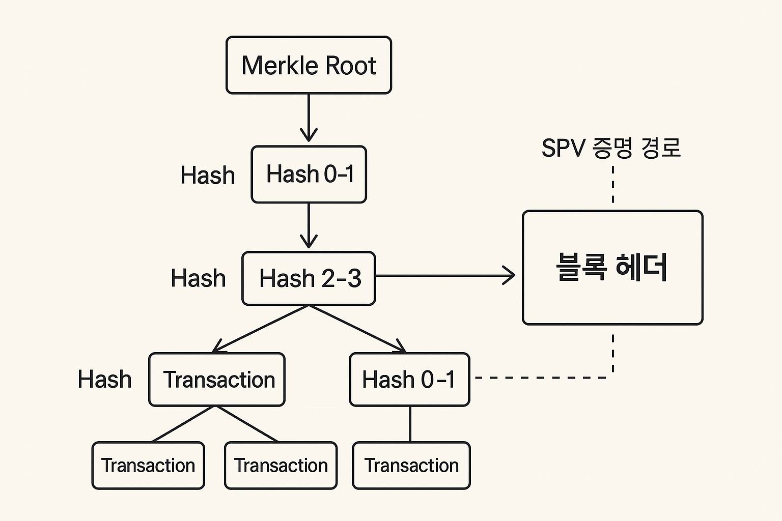 주의: 헤더만으로 트랜잭션 유효성은 확정할 수 없습니다. SPV는 경량 검증이며, 필요 시 풀노드 검증이 권장됩니다.