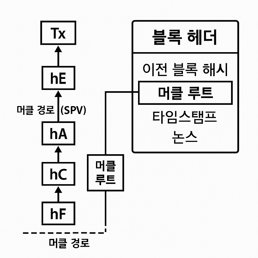 - 머클 경로(Proof): 포함 증명에 필요한 형제 해시의 모음