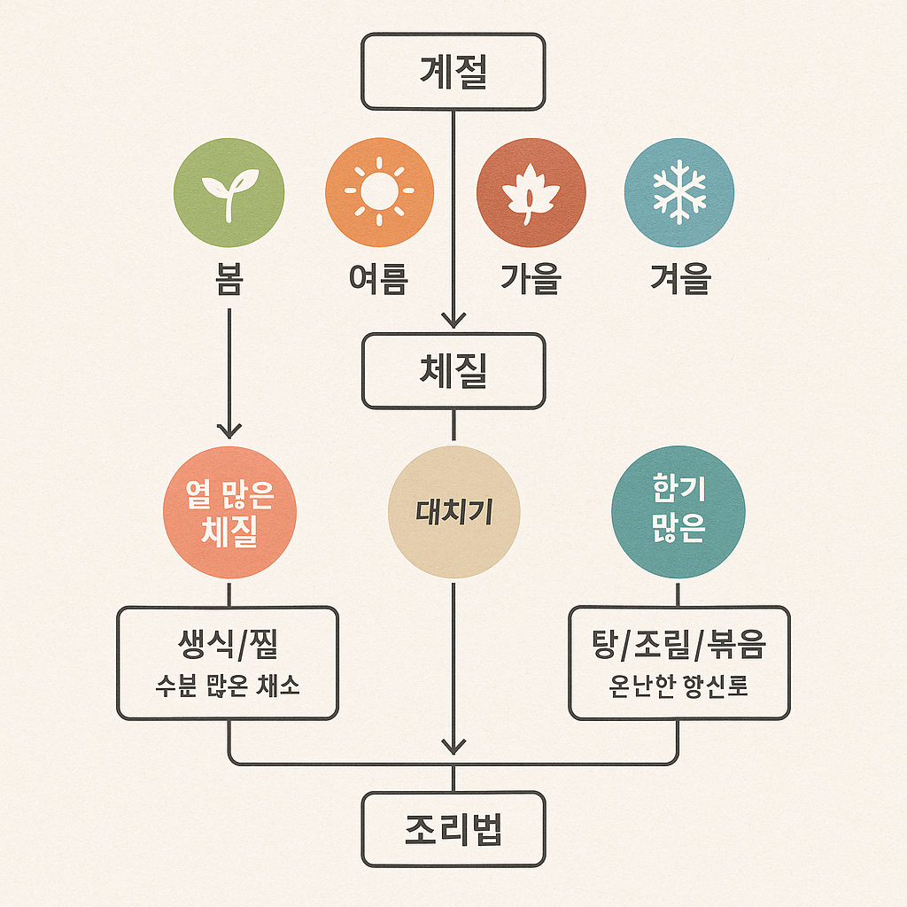 - 같은 재료라도 조리법·계절·개인의 상태에 따라 작용이 달라질 수 있음을 전제합니다.