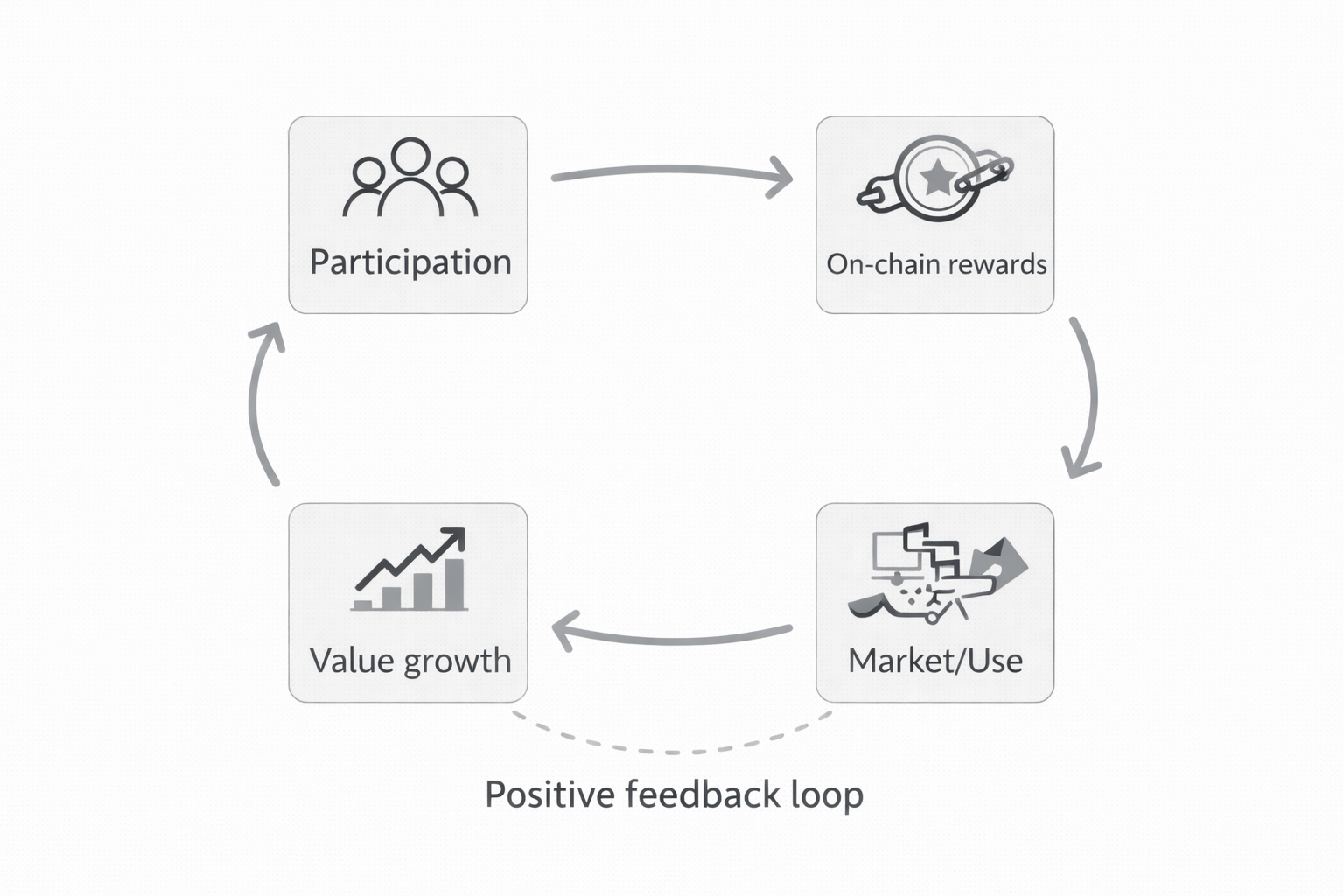 - 참여가 늘수록 네트워크 가치는 상승하고, 보상 기대가 커져 선순환이 형성된다.